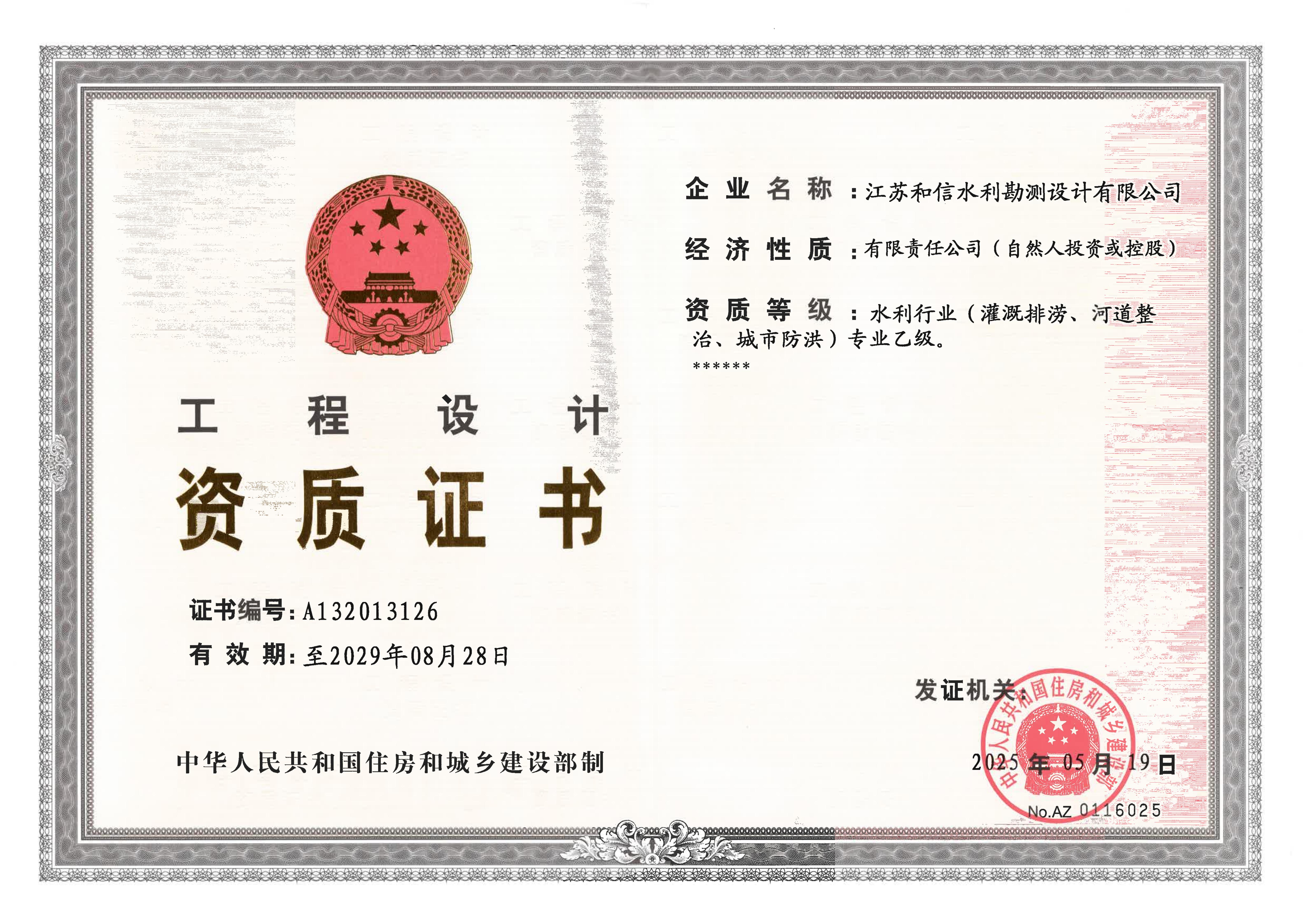 水利行業(yè)設(shè)計(jì)乙級(jí)證書