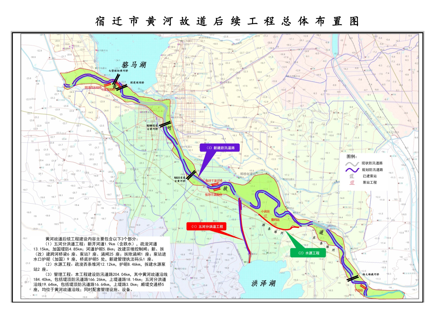 1月3日,通過競爭性談判,我公司成功中標(biāo)宿遷市黃河故道后續(xù)工程施工圖設(shè)計咨詢項目,合同額達34萬元。 本次宿遷市黃河故道后續(xù)工程施工圖設(shè)計咨詢內(nèi)容包含五河分洪道工程(新開河道1.9km,疏浚河道13.15km,加固堤防4.85km;河道護砌5.8km;改建宗墩控制閘;新、拆建跨河橋梁6座、泵站7座、涵閘25座;拆除涵閘1座;泵站進水口護砌9座,橋底護砌5處,新建管理執(zhí)法碼頭1座等)、水源工程(疏浚西條堆河12.12km,護砌8.46km,拆建水源泵站2座等)、管理工程(建設(shè)防汛道路204.04km)等項目,工程總投資約7.8億元。