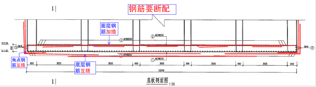 為提高溧水經濟開發(fā)區(qū)圩區(qū)排澇能力,新建三丫圩、章西圩、凌莊圩3座排澇站工程。三丫圩排澇站設計排澇流量13m3/s,主泵采用5臺900ZQ-85D型潛水軸流泵,總電機功率1250千瓦;章西圩排澇站設計排澇流量10m3/s,主泵采用4臺900ZQ-85D型潛水軸流泵,總電機功率1000千瓦;凌莊圩排澇站設計排澇流量7m3/s,主泵采用3臺900ZQ-85D型潛水軸流泵,總電機功率750千瓦。 會上我公司咨詢專家對:泵站引河與周邊河道平面銜接;出水池隔水墩布置;沉管灌注樁樁長、樁距;翼墻配筋;電氣設備布置等提出了許多合理化建議。 指導設計人員鋼筋混凝土結構配筋要堅持“兩原則、六字方針”,兩條原則:①滿足構件最小配筋率要求;②滿足構件極限承載力要求和構件正常使用極限狀態(tài)下裂縫開展寬度及撓度變形要求。配筋六字方針:“斷配、互插和互搭”。以泵室配筋為例,泵室為框架結構,各框架固支連接點外側鋼筋適當加長,互插借用,變構造鋼筋為受力鋼筋,增加角點抵抗彎矩值;隔墩處底層鋼筋互搭;面層鋼筋中間加插加強短筋。如下圖所示: