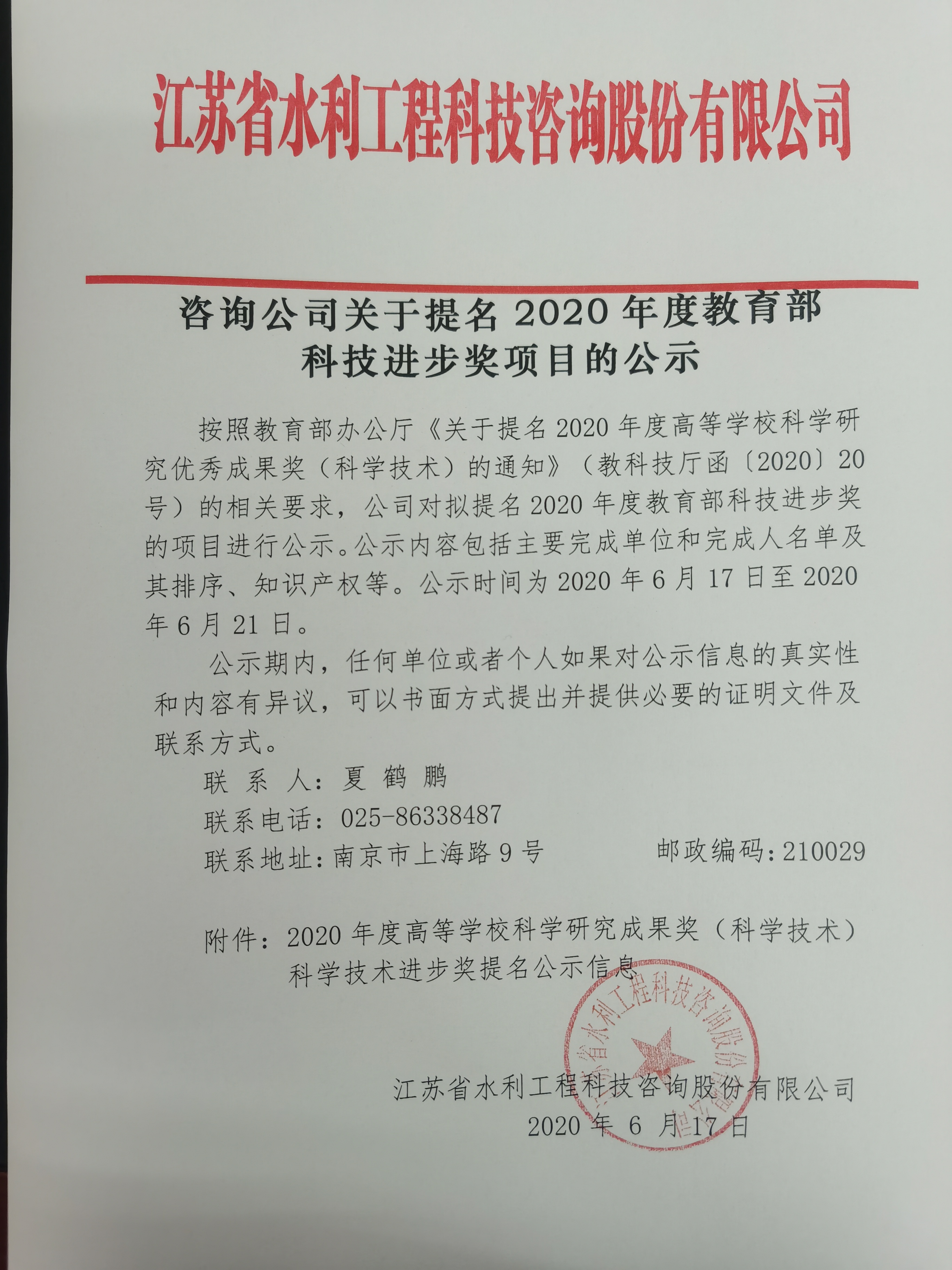 咨詢公司關(guān)于提名2020年度教育部科技進(jìn)步獎項目的公示