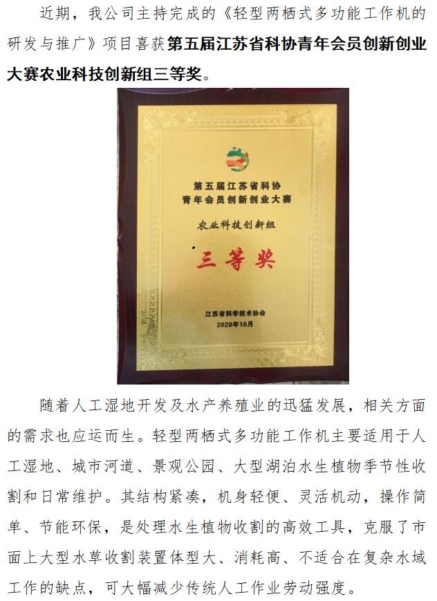 公司喜獲第五屆江蘇省科協(xié)青年會員創(chuàng)新創(chuàng)業(yè)大賽農業(yè)科技創(chuàng)新組三等獎