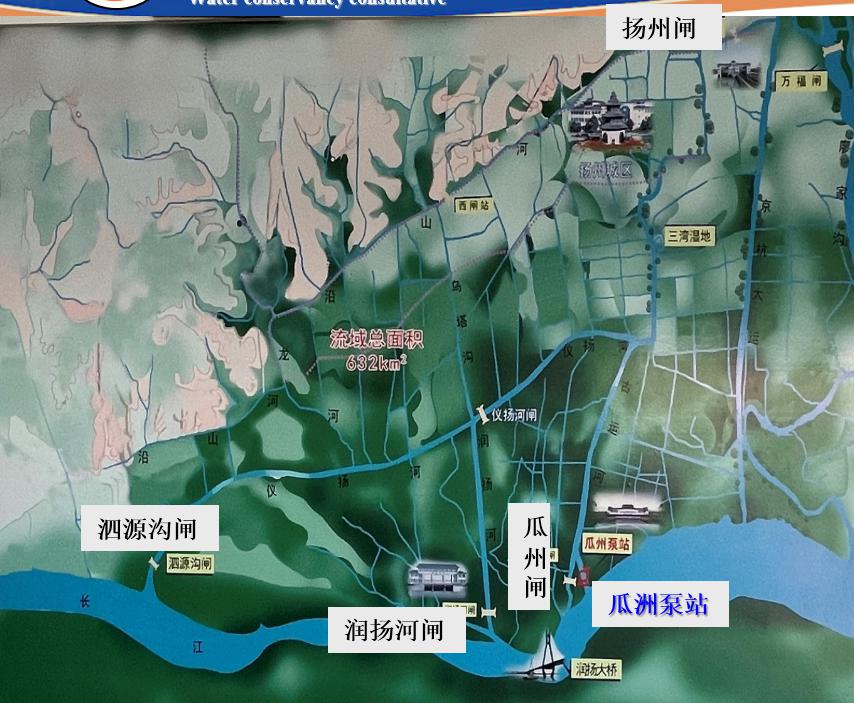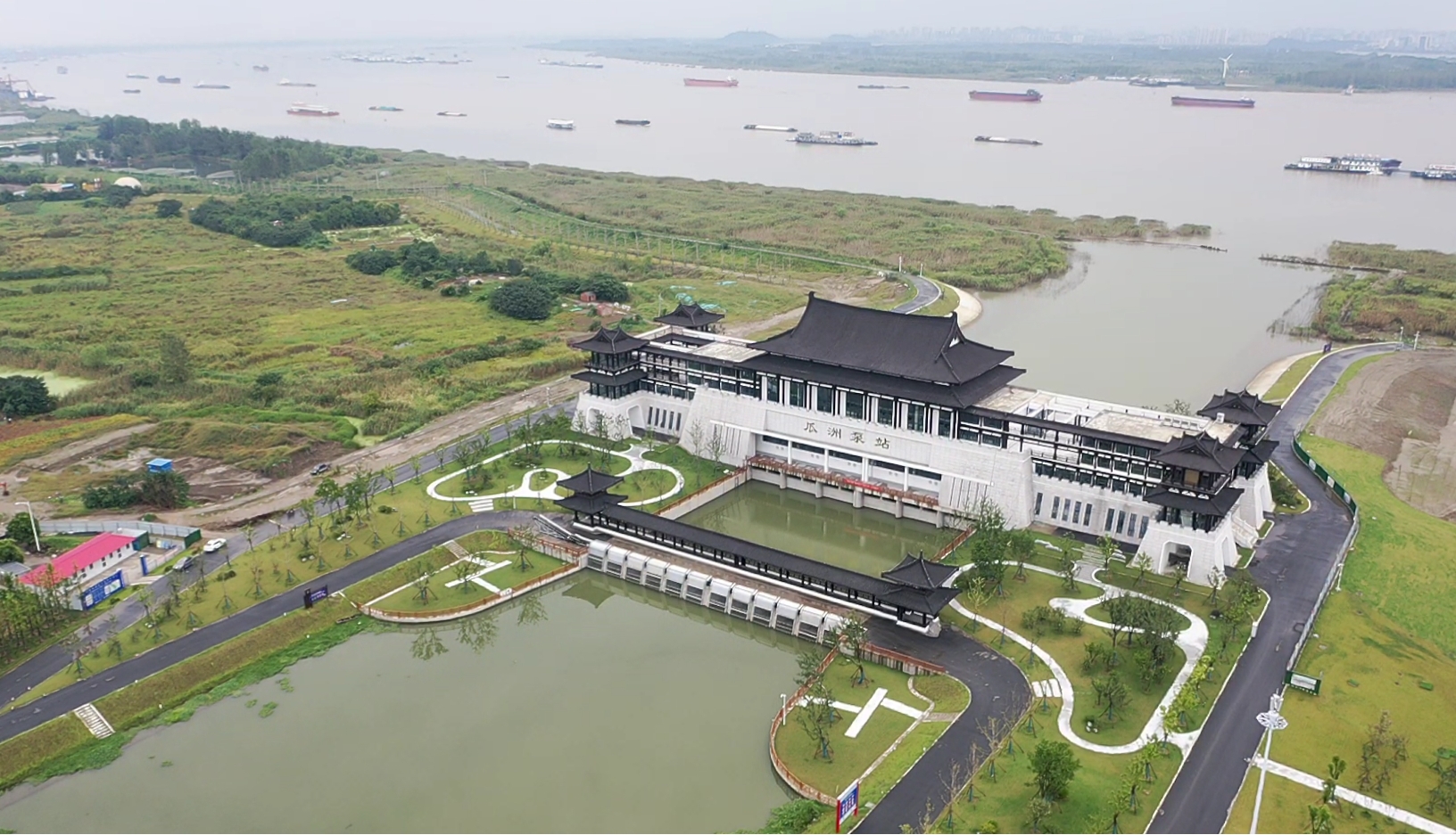 揚(yáng)州市瓜洲泵站工程站址位于古運(yùn)河南端瓜洲閘東側(cè),距長(zhǎng)江堤防150m,泵站設(shè)計(jì)規(guī)模為170m3/s,設(shè)計(jì)凈揚(yáng)程1.88m,最大凈揚(yáng)程2.72m,選擇6臺(tái)立式全調(diào)節(jié)軸流泵(3000ZLQ-28.4),單機(jī)設(shè)計(jì)流量為28.4m3/s,水泵配套1600kW高壓同步電機(jī),總裝機(jī)容量9600kW。采用肘型進(jìn)水流道、虹吸式出水流道,真空破壞閥斷流。主機(jī)組采用液壓全調(diào)節(jié)的方式調(diào)節(jié)葉片角度,液壓裝置設(shè)置2套。批復(fù)總投資4.03億元。瓜洲泵站被譽(yù)為揚(yáng)州“城市安全第一工程”,揚(yáng)州濱江枕淮,是全國(guó)唯一地處兩大流域交匯點(diǎn)城市,一旦遭遇江潮頂托、淮水并漲,城市澇水外排不暢。瓜洲泵站建成后,提高了揚(yáng)州市主城區(qū)水動(dòng)力條件,有效實(shí)現(xiàn)主城區(qū)清水、活水,改善水質(zhì)和水生態(tài)環(huán)境;提升了區(qū)域、流域防洪排澇能力,2020年汛期抽水量達(dá)3.23億m3,保障了揚(yáng)州城區(qū)“不淹不澇”。 瓜洲泵站建筑設(shè)計(jì)新穎。理念:打造園林景觀水利樞紐;創(chuàng)新:建筑整體外觀采用唐式古典建筑,高層廠房將古城墻與重檐歇山頂完美融合,實(shí)現(xiàn) “橋上觀樓,樓上觀江” 。體現(xiàn)了東方特有的審美情趣,美一是對(duì)稱美。美二是建筑群高低錯(cuò)落有致,別有風(fēng)味。將盛唐建筑出檐深遠(yuǎn)、磅礴大氣特點(diǎn)與水工建筑物恢弘的氣勢(shì)相結(jié)合。立面設(shè)計(jì)上,用揚(yáng)州傳統(tǒng)建筑色彩、白色和玻璃構(gòu)筑一個(gè)簡(jiǎn)潔大氣、有著獨(dú)特內(nèi)涵的水利樞紐。與古運(yùn)河、長(zhǎng)江交相輝映,彰顯瓜洲古鎮(zhèn)、古渡文化特征。瓜洲泵站即將成為揚(yáng)州市又一張亮麗名片和長(zhǎng)江邊上一道靚麗風(fēng)景線。