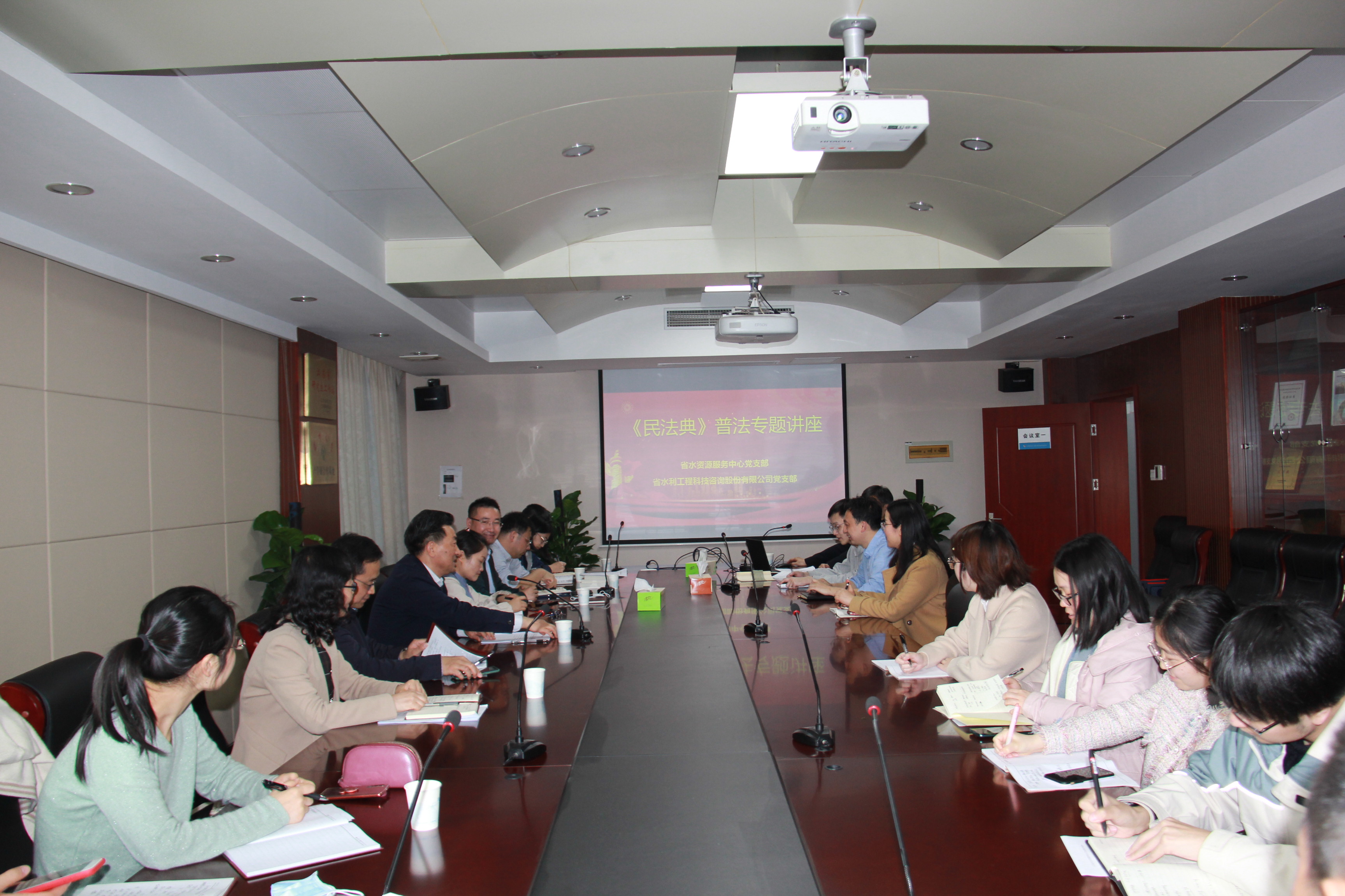 3月26日下午,公司黨支部與省水資源服務中心黨支部聯合舉辦了《民法典》普法專題講座,省水資源服務中心李太民主任主持會議,公司顏紅勤董事長出席會議,兩支部全體黨員參加會議。