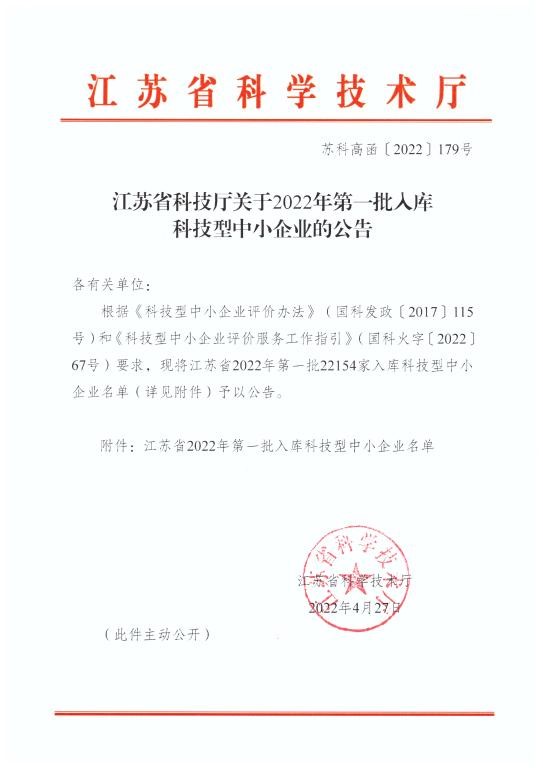 根據(jù)《科技型中小企業(yè)評價辦法》(國科發(fā)政〔2017〕115號),《關于做好2022年科技型中小企業(yè)評價服務工作的通知》(國科火字〔2022〕68號)等相關文件要求,我公司組織人力積極申報2022年度科技型中小企業(yè),經(jīng)過嚴格審查,成功入庫2022年度科技型中小企業(yè)。公司將不斷引入高端人才,提升企業(yè)自主創(chuàng)新能力,增強企業(yè)核心競爭力。同時積極拓寬科研領域,為企業(yè)更好、更快、更強的發(fā)展提供技術支撐,為江蘇水利科技發(fā)展貢獻應有的力量。